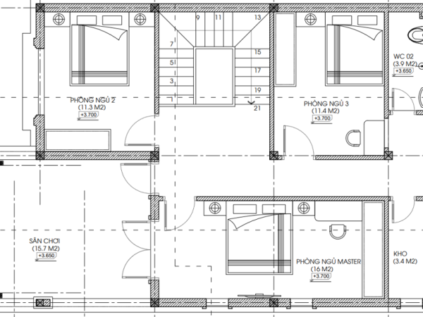- Phòng ngủ 3 có diện tích 11.4 m2