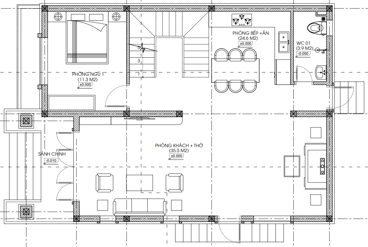 Sau khi tiến hành khảo sát hiện trường khu đất, lắng nghe và thấu hiểu một cách sâu sắc những mong muốn của gia chủ, chúng tôi đã bố trí các phòng một cách thật hợp lý cho gia chủ.