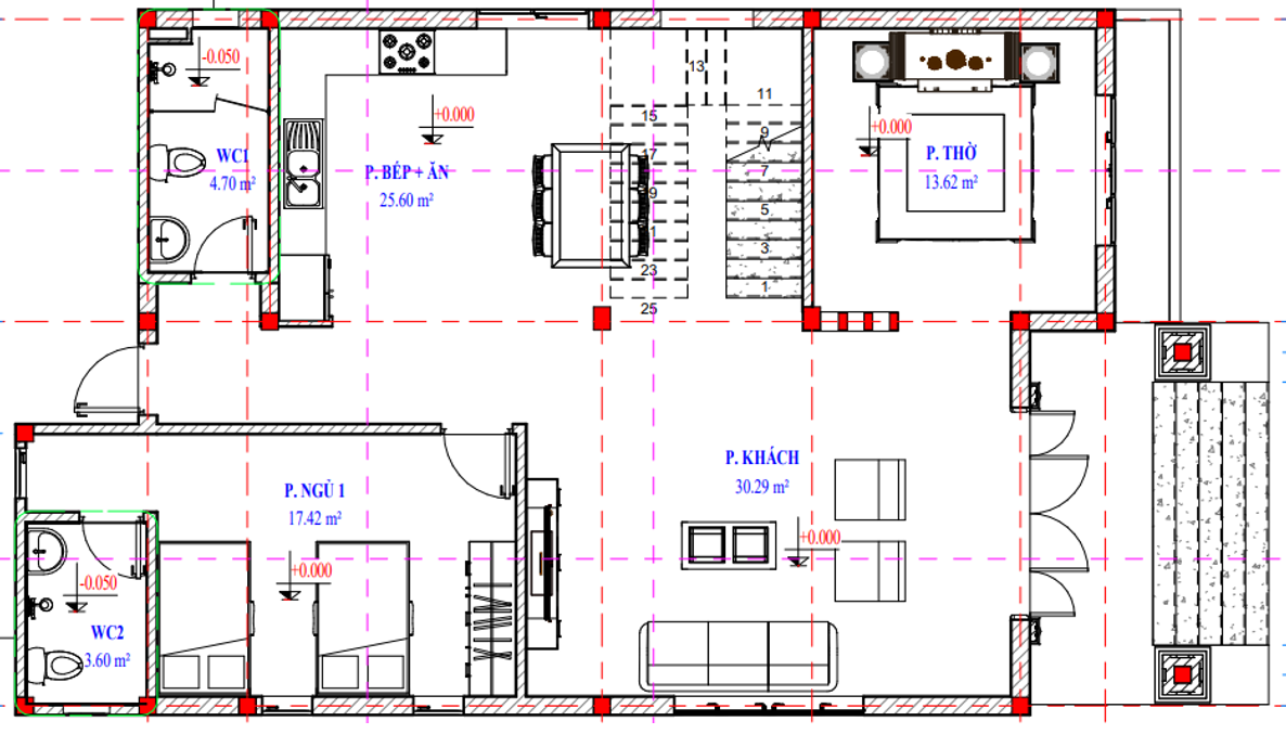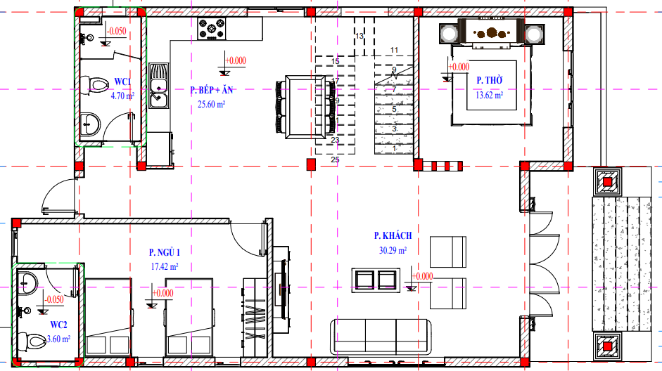 - Phòng thờ có diện tích 13.62 m2
