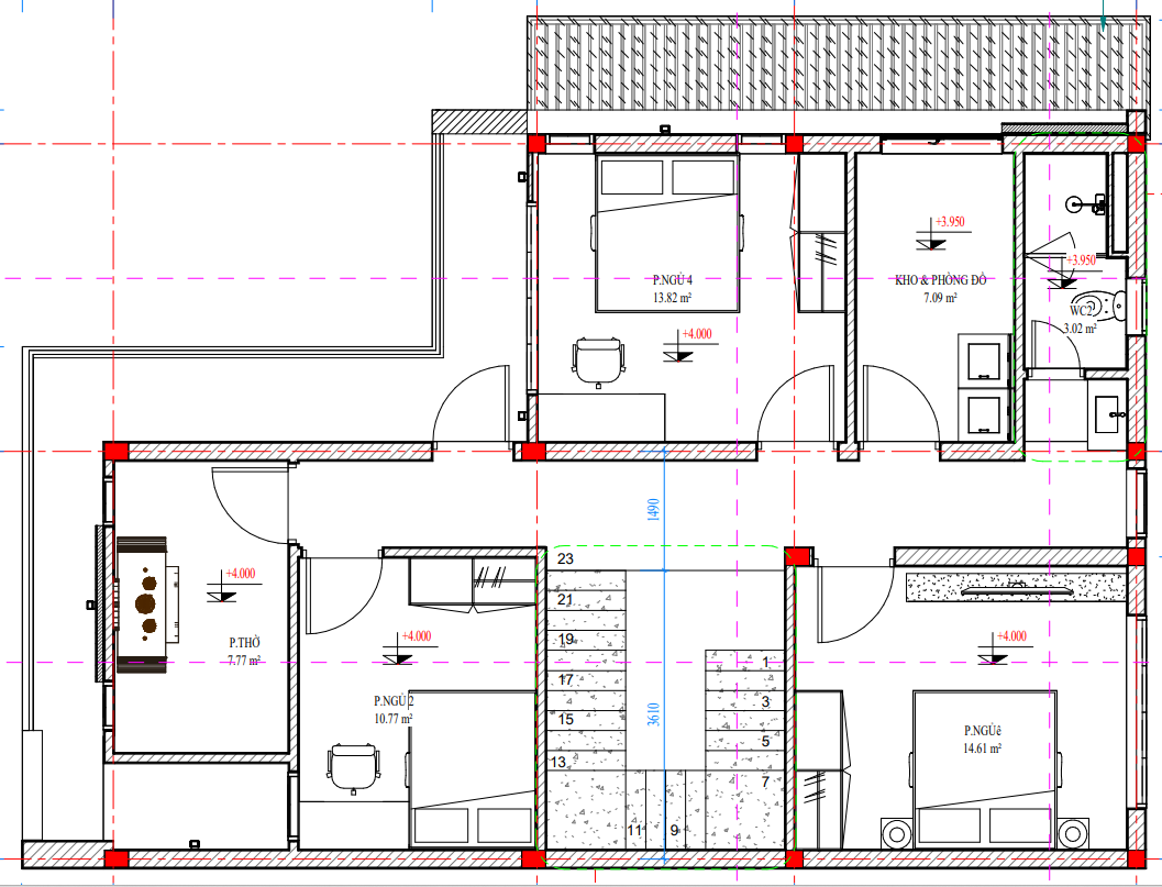 - Phòng ngủ 4 có diện tích 13.82 m2
