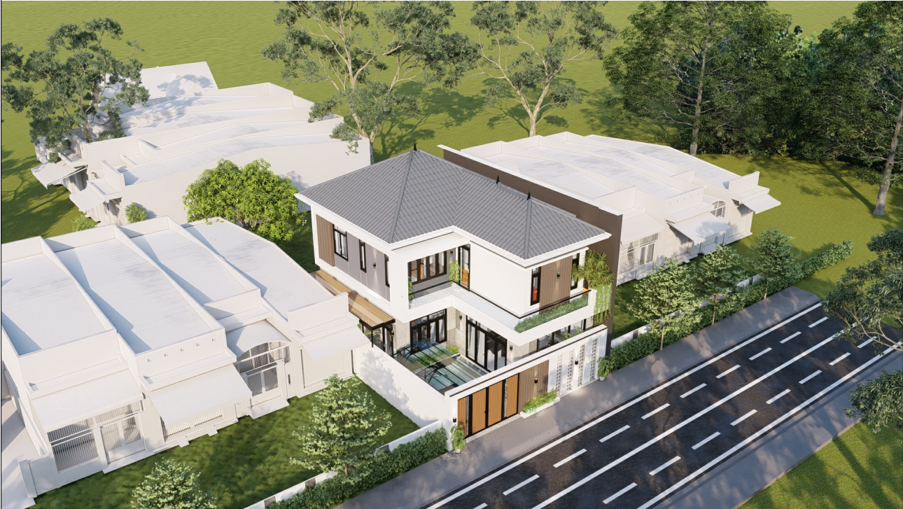 Phối cảnh 3D ngoại thất mẫu biệt thự đẹp 2 tầng mái Nhật hiện đại