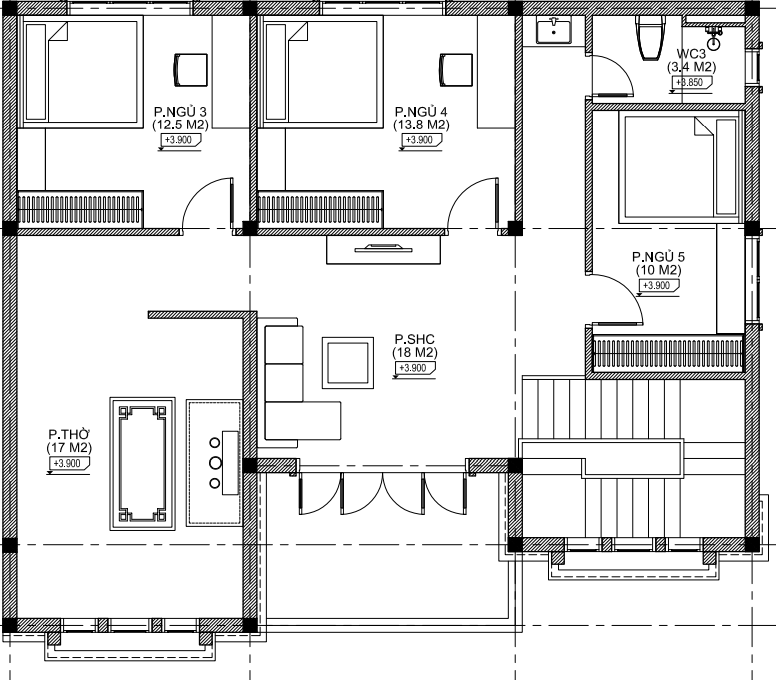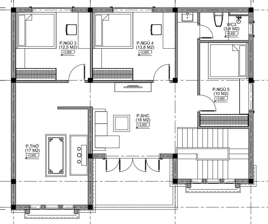 - Phòng thờ có diện tích 17 m2