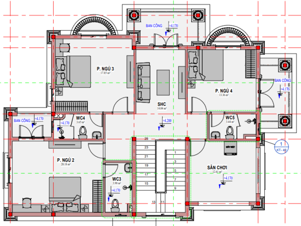 - Phòng ngủ 04 có diện tích là 13.36 m2