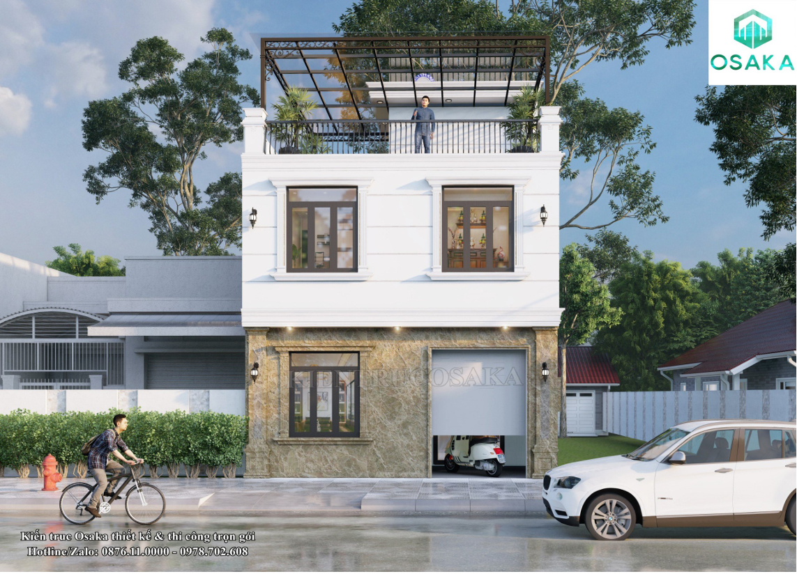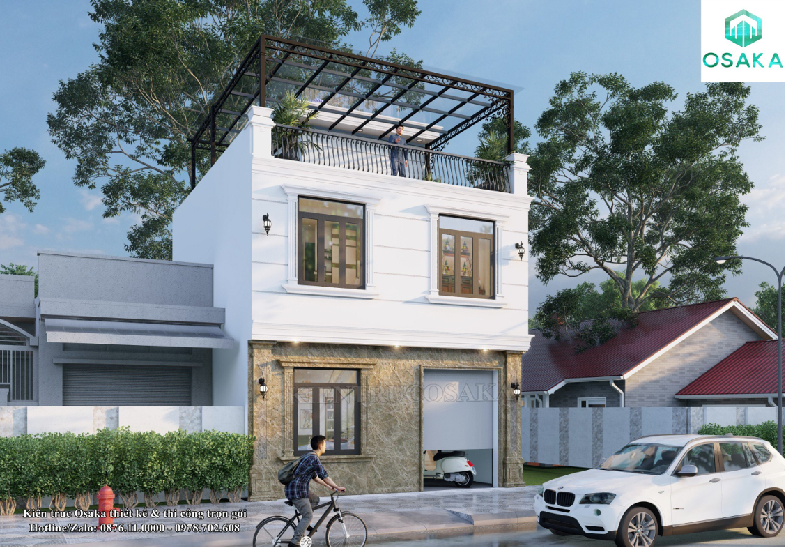 Cập nhật mẫu nhà phố 2 tầng 1 tum trẻ trung hiện đại tại Hà Nội | P2459