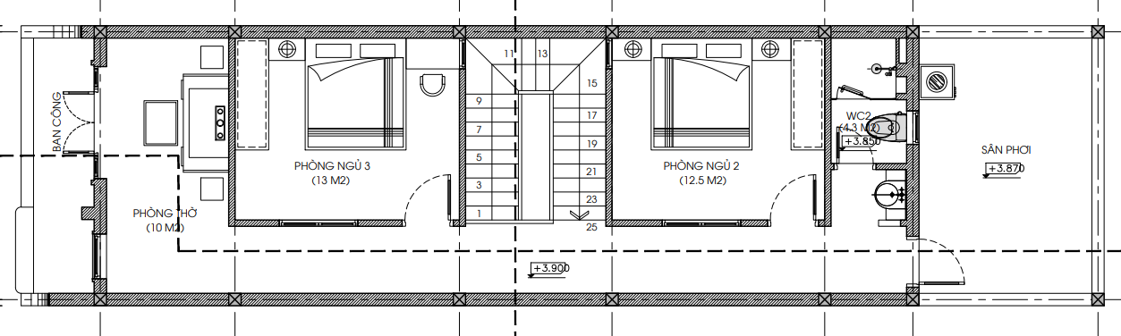 - Phòng ngủ 3 có diện tích 13 m2