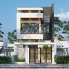 Ngôi nhà sử dụng gam màu trắng chủ đạo, kết hợp hài hòa với màu nâu gỗ và xám đậm, tạo cảm giác sang trọng nhưng vẫn ấm áp. Các mảng đặc – rỗng được xử lý khéo léo, giúp ngôi nhà trông thanh thoát, cao ráo và hiện đại. Không gian xanh được bố trí xen kẽ ở ban công và sân thượng, mang lại sự gần gũi với thiên nhiên.