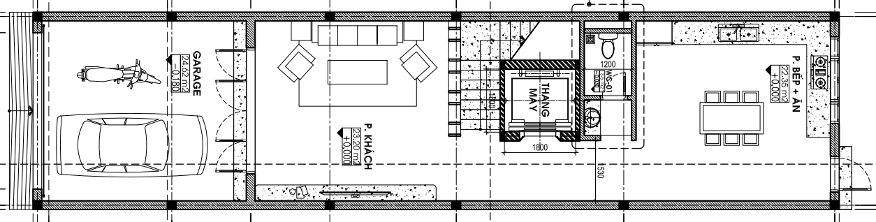 Điểm nhấn là mặt tiền tầng 1 được ốp đá hoa cương cao cấp sang trọng, với tông màu tối thì ngôi nhà luôn sạch sẽ, mới mẻ theo thời gian.