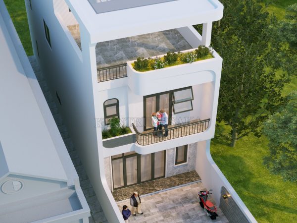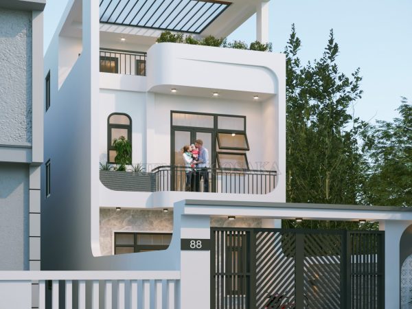 - Phối cảnh tổng thể công trình có chiều rộng mặt tiền : “ 5.5 m “ và chiều sâu : “ 15.9 m”