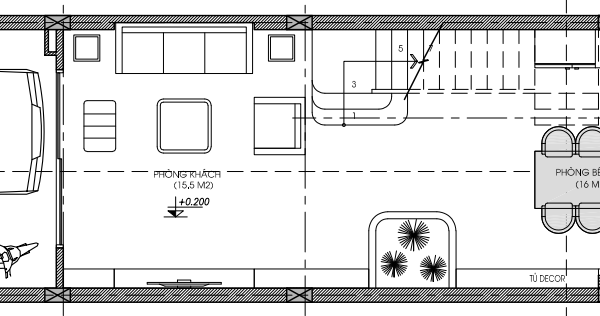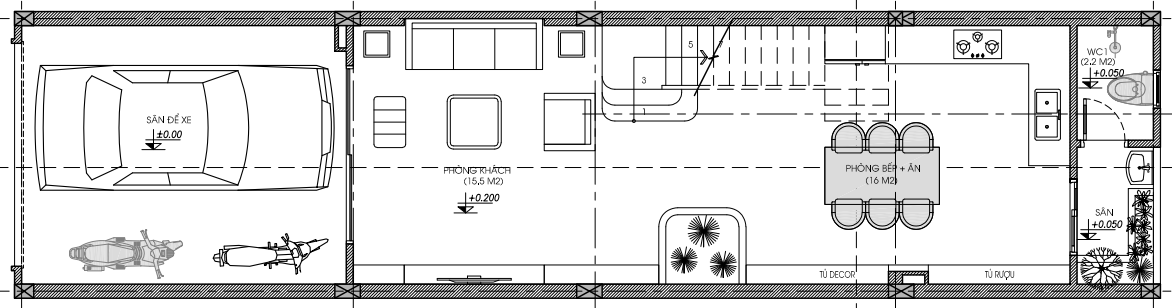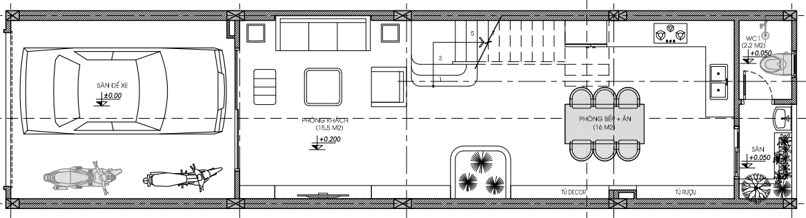 Mặt bằng công năng tầng 1 nhà phố 3 tầng 1 tum