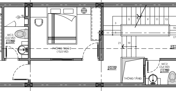 - Nhà vệ sinh 3 có diện tích 3,5 m2