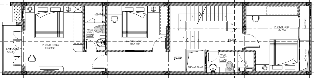 Mặt bằng công năng tầng 3 nhà phố 3 tầng 1 tum
