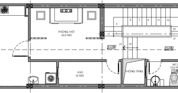 - Phòng kho có diện tích 4 m2