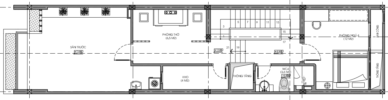Mặt bằng công năng tầng 2 nhà phố 3 tầng 1 tum