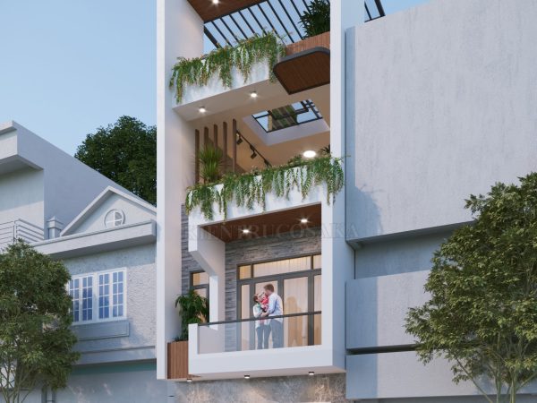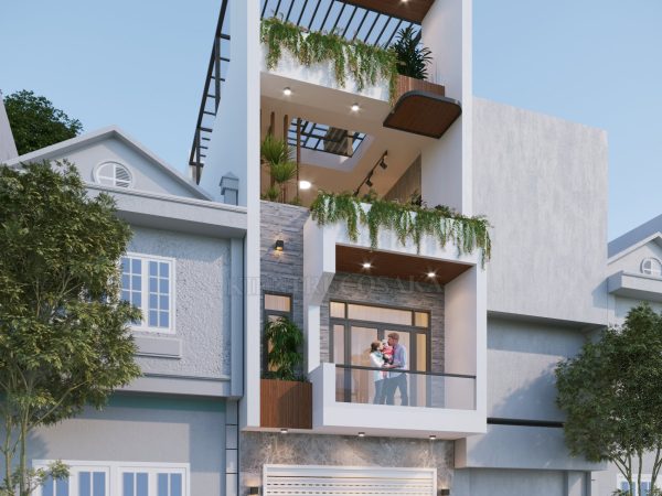 - Phối cảnh tổng thể công trình có chiều rộng mặt tiền : “ 4,5 m “ và chiều sâu : “ 18 m”