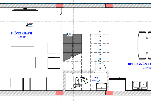 - Không gian phòng khách có diện tích 18.96 m2