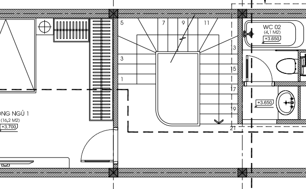 - Phòng vệ sinh có diện tích 4.1 m2