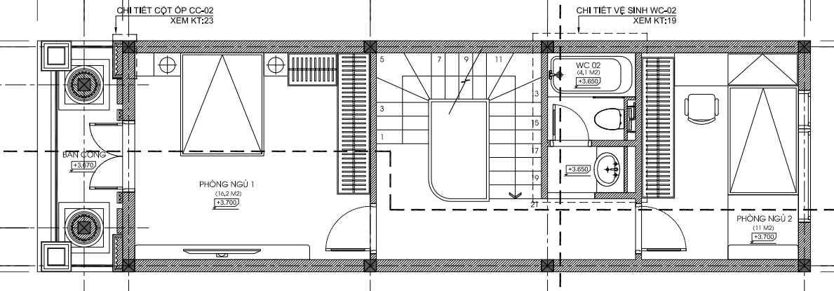 - Phòng ngủ 2 có diện tích 11 m2