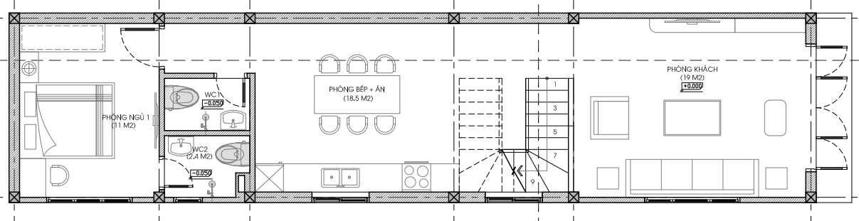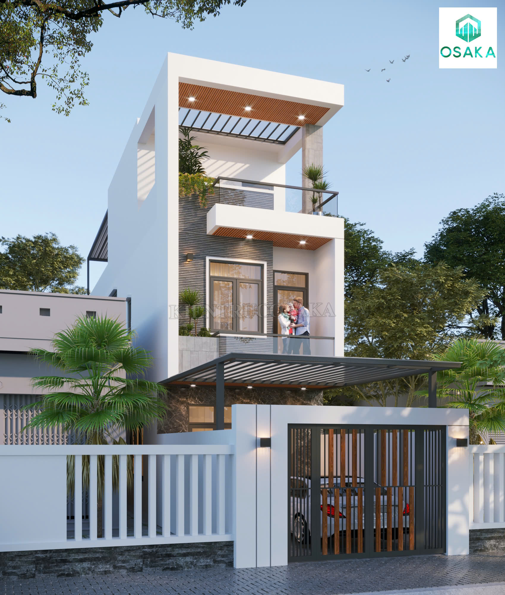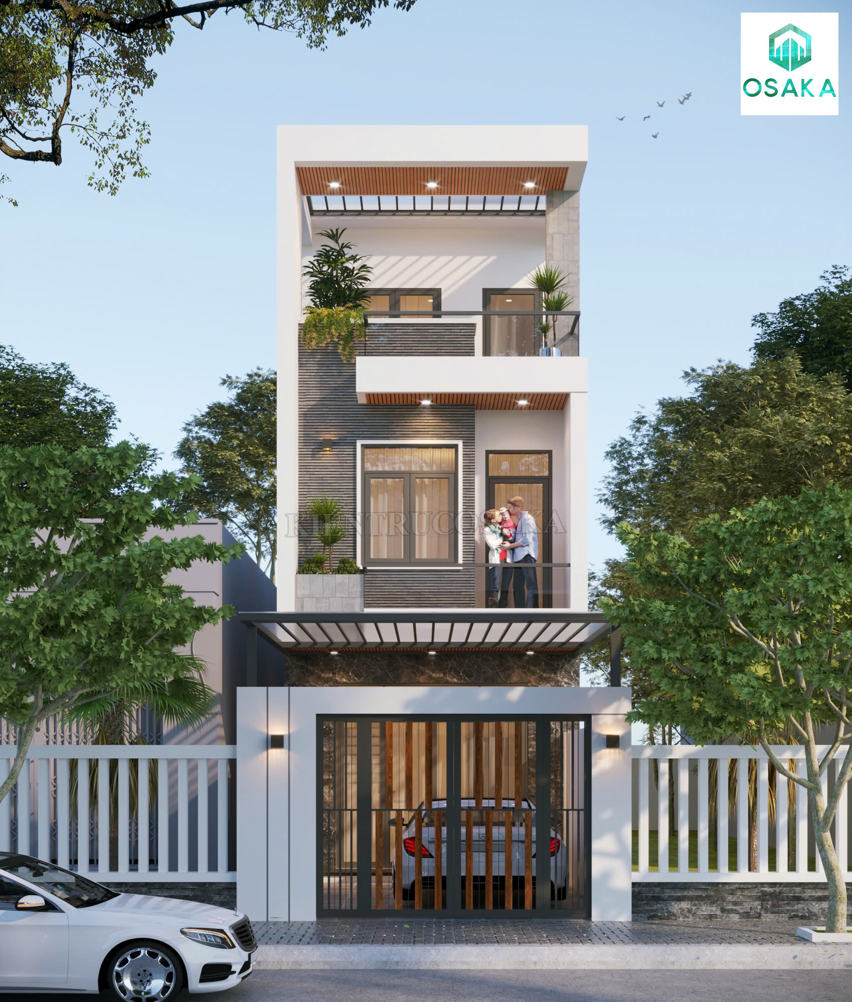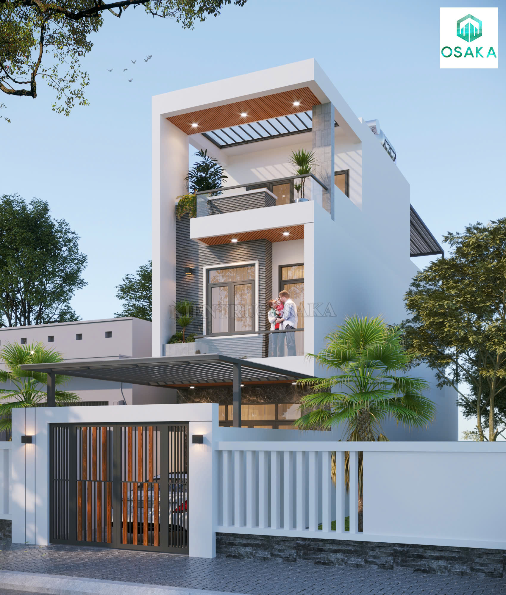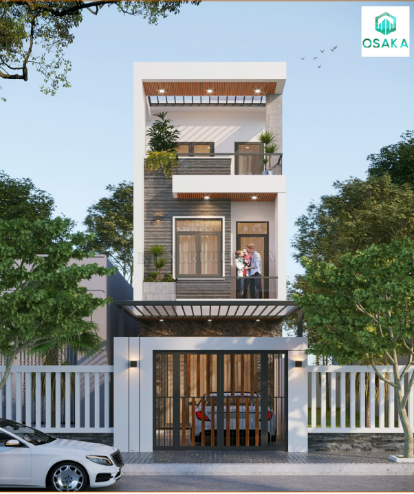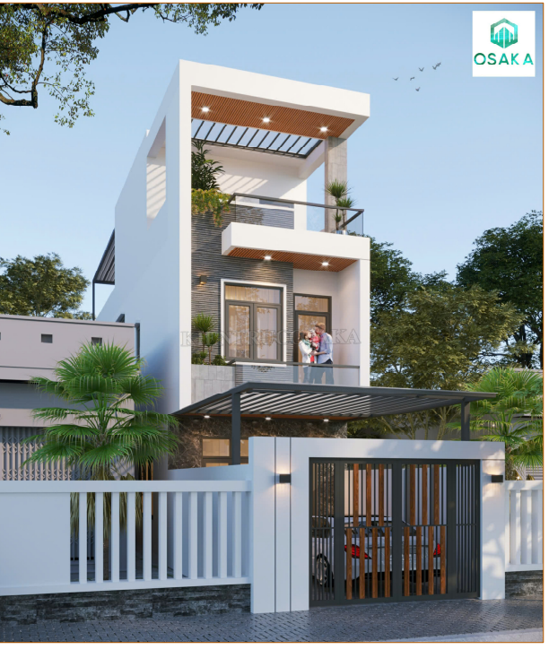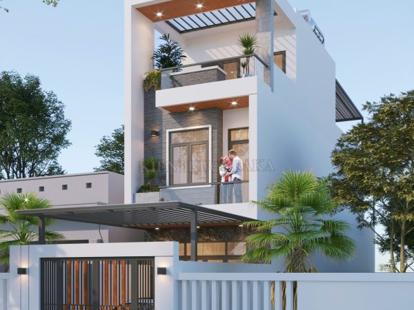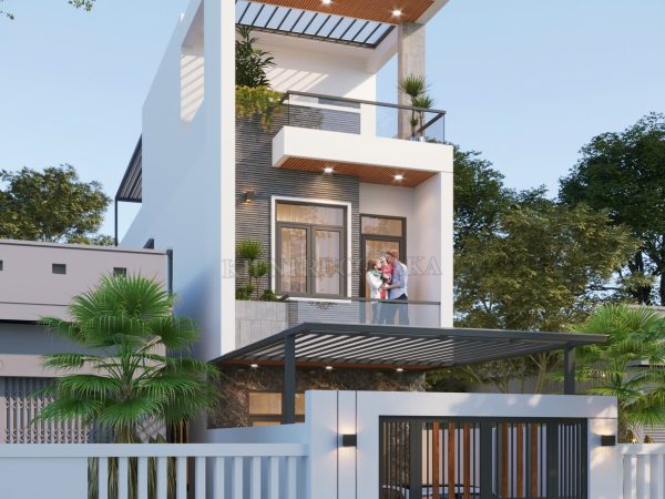 Mẫu nhà phố 2 tầng 1 tum phong cách sang trọng, hiện đại tại Hà Nội | P24137