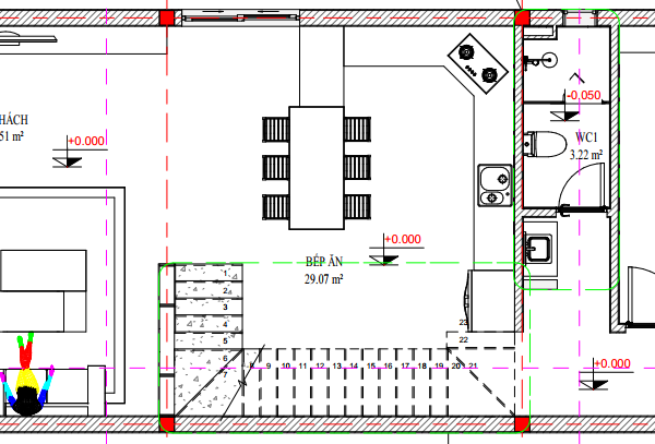 - Phòng bếp cùng phòng ăn có diện tích 29.07 m2