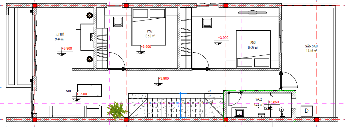 - Phòng ngủ 3 có diện tích 16.39 m2