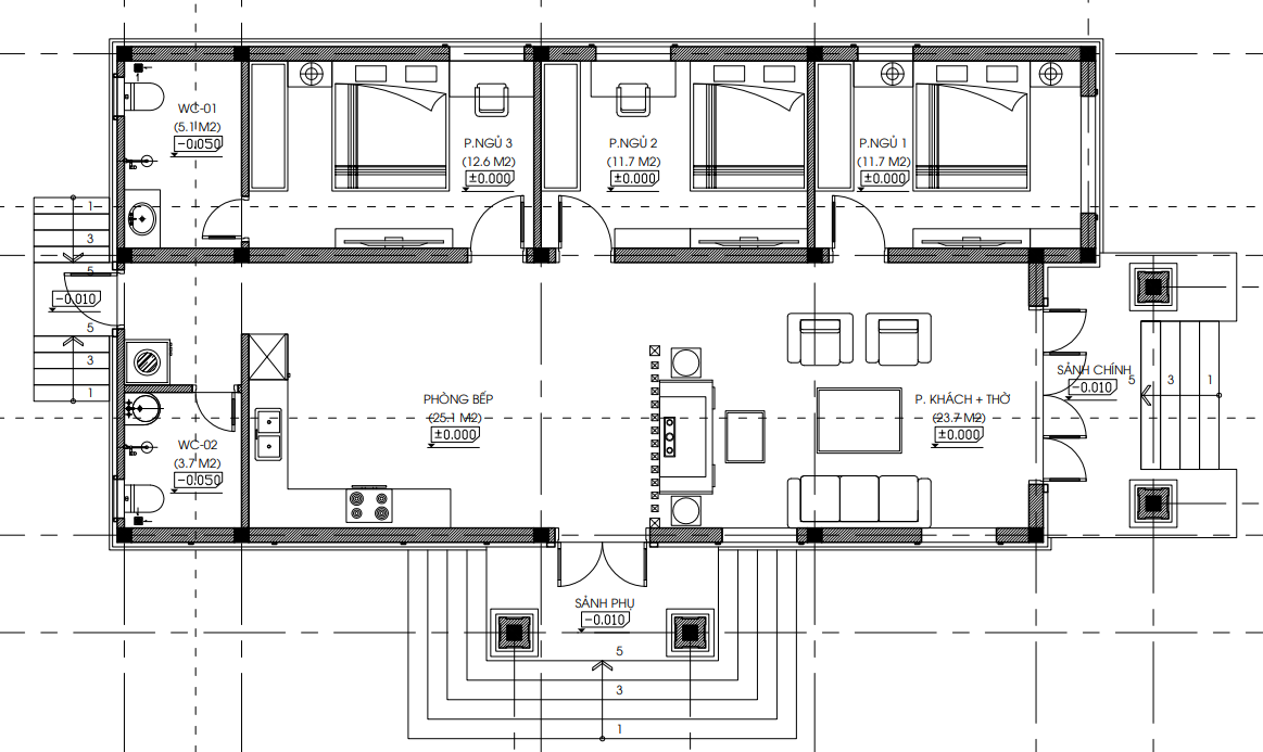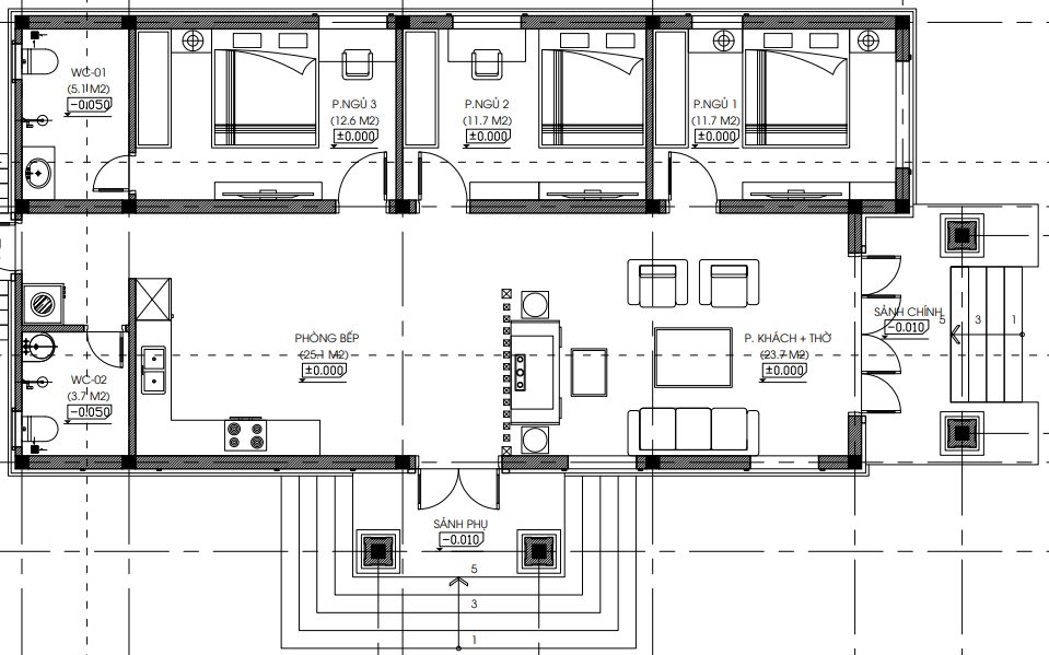 Sau khi tiến hành khảo sát hiện trường khu đất, lắng nghe và thấu hiểu một cách sâu sắc những mong muốn của gia chủ, chúng tôi đã bố trí các phòng một cách thật hợp lý cho gia chủ.