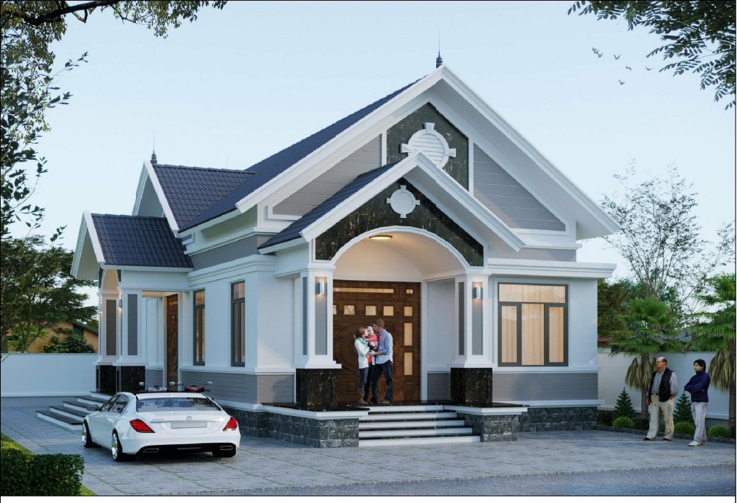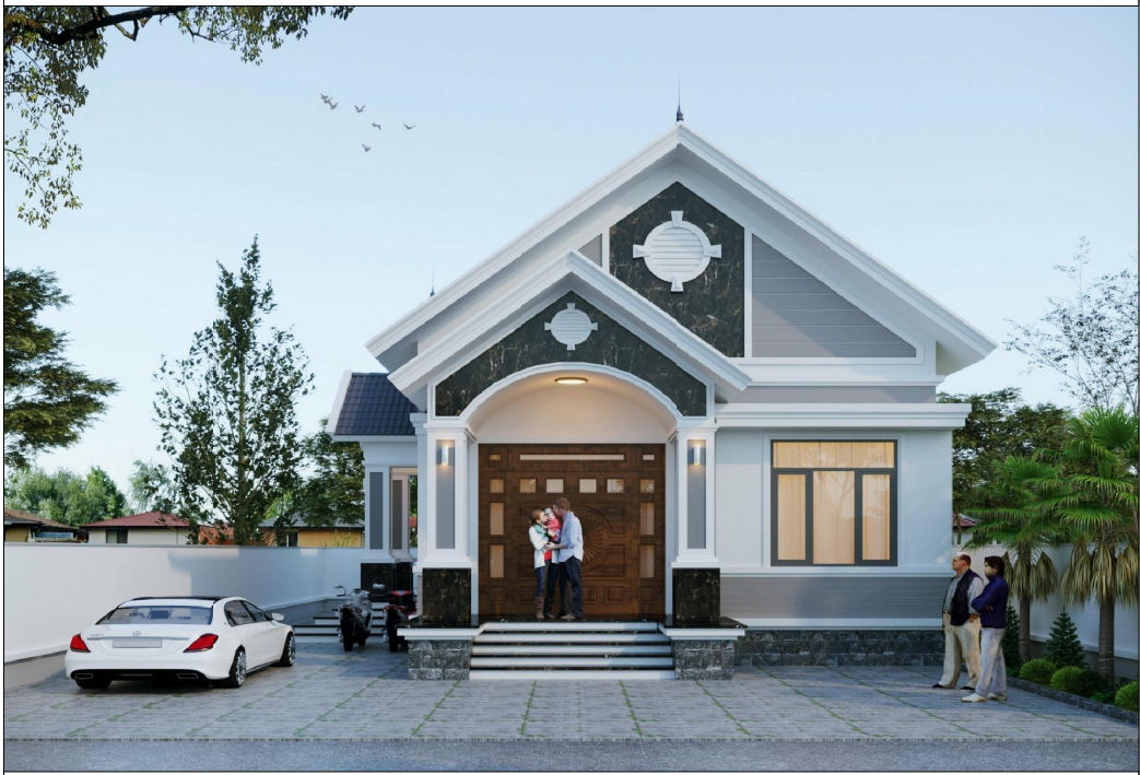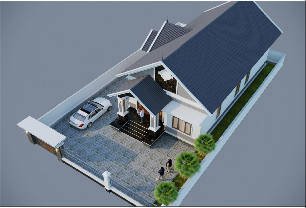 Phối cảnh 3D ngoại thất mẫu nhà cấp 4 đẹp mái Nhật hiện đại tại Ninh Bình