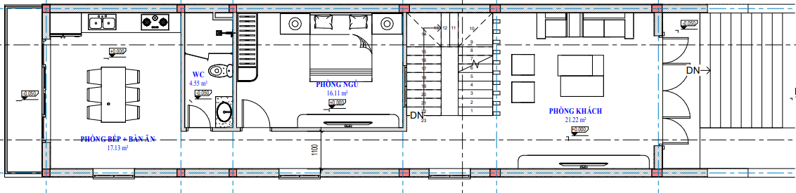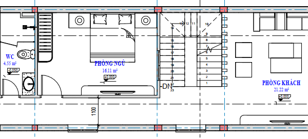 - Không gian phòng khách có diện tích 21.22 m2